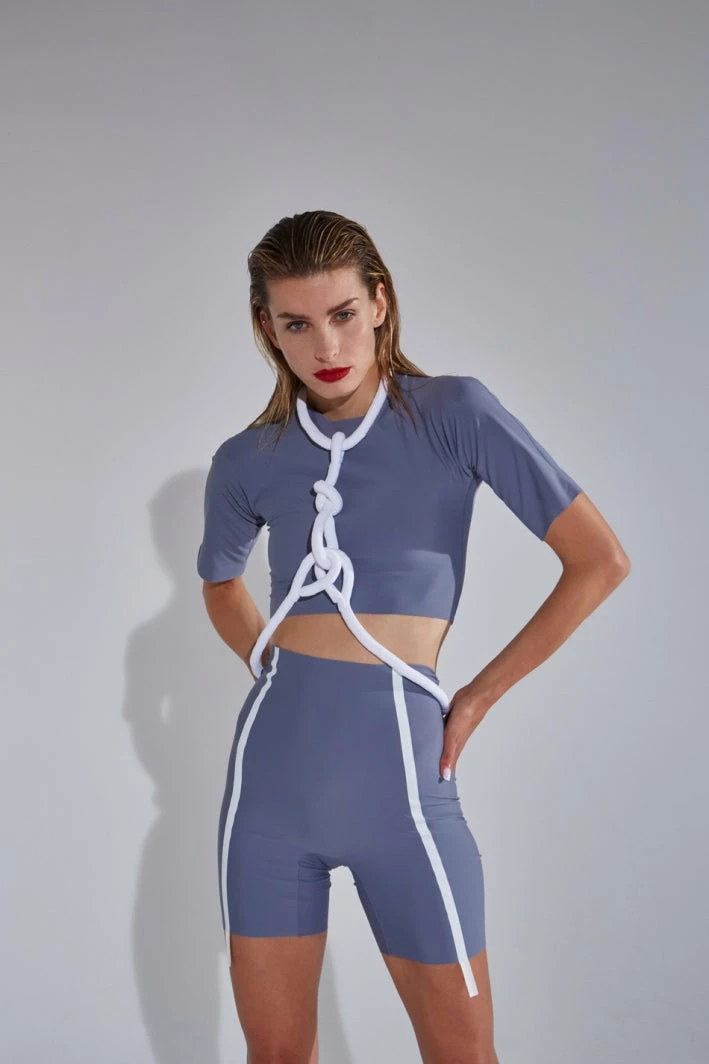Short in jersey with a graphic strip in polyurethane.