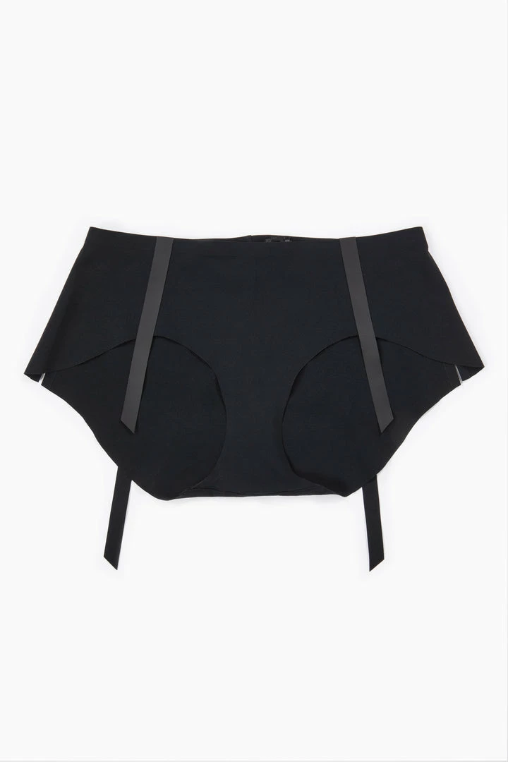 The Ruban noir panties have a special feature; there is a three-snap button fastener inside the leg.