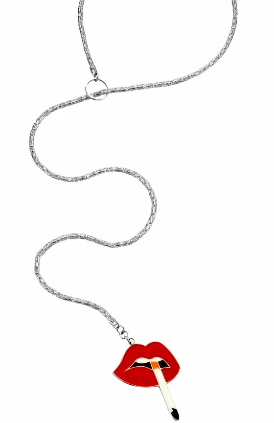 LB-000003 LB13B-PL-O-OS-ND SMOKING LIPS LARIAT Oxidized silver, red enamel; double-sided ONE SIZE