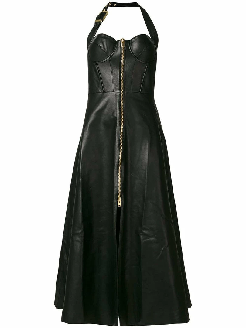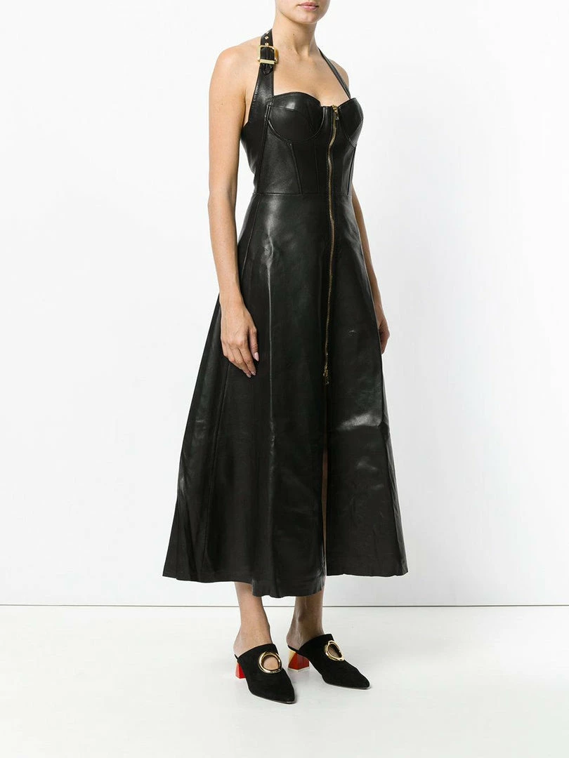 Natasha Zinko Halter Leather Zip Front Midi Dress
