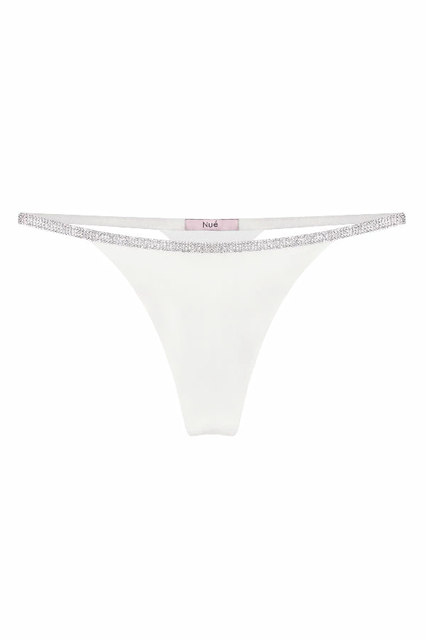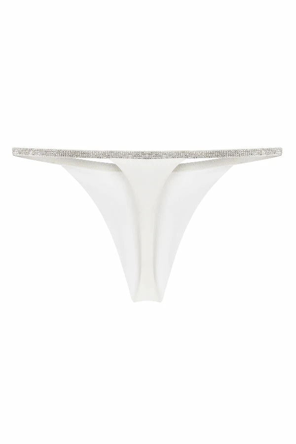 A silk thong is made from natural Italian silk and shaped into high-cut legs.