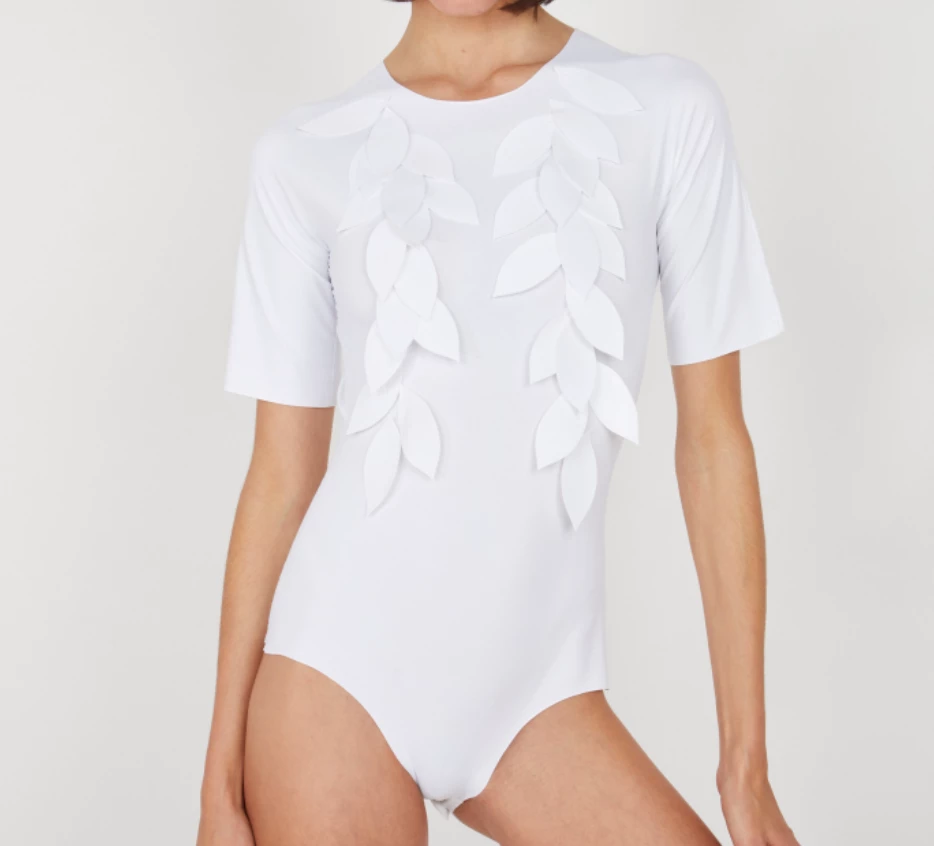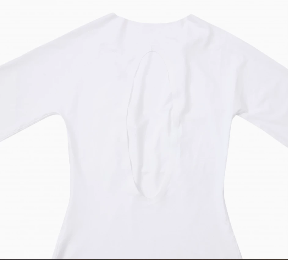 The finishing touches at the neck and the thighs are laser cut to bring a side of minimalist and to avoid compressing the silhouette.