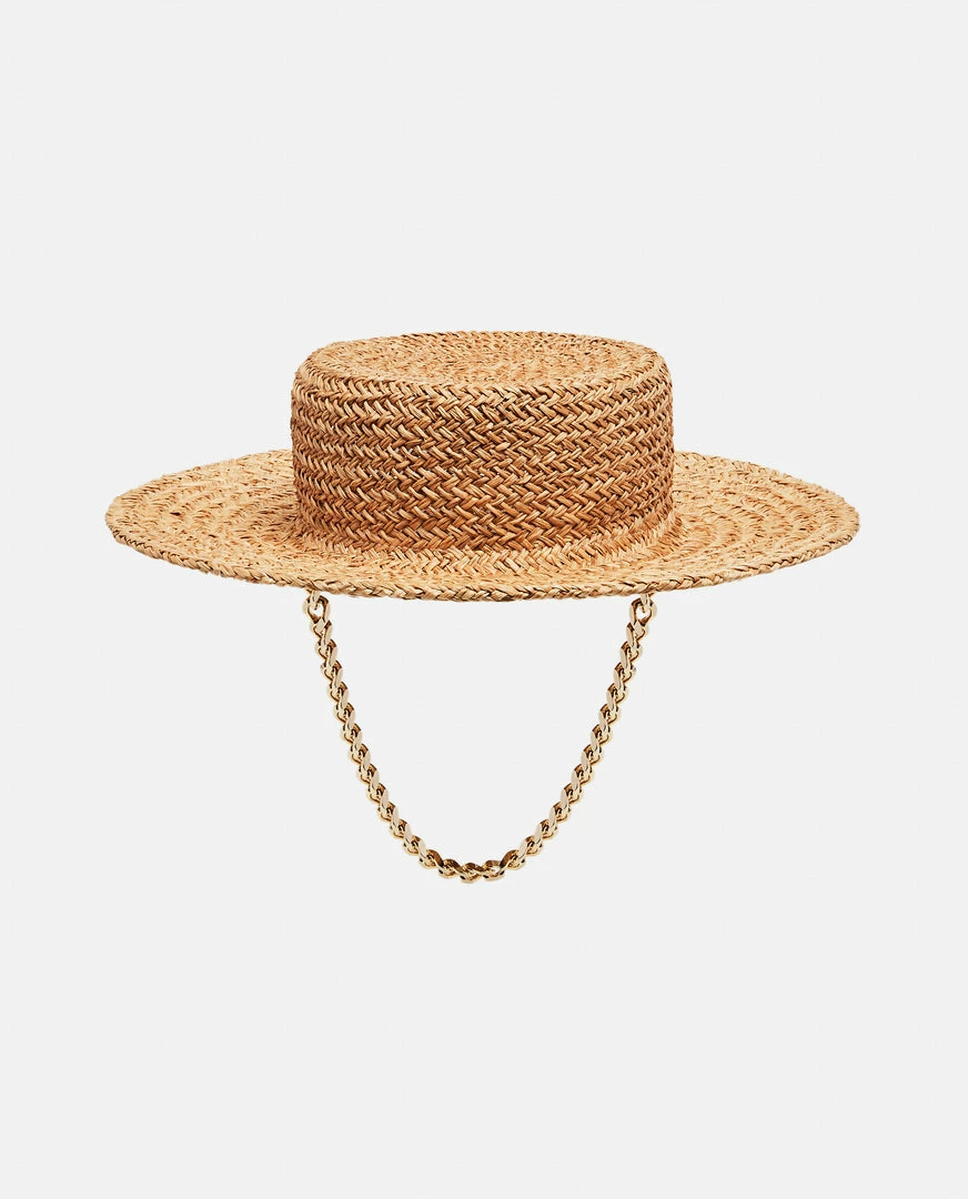 We recommend to wear it behind and let it lie on your hair as a highlight. The chain is also removable, so this hat comes with everyday outfit transformation included.
