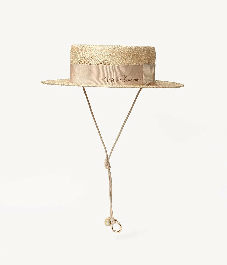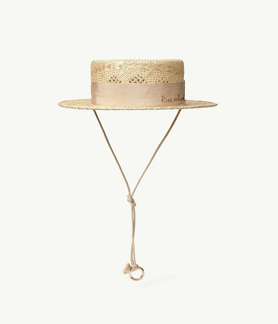Ruslan Baginskiy Neutral Straw Boater Hat is neutral in terms of colors, but not the impression it makes. This time the woven straw looks almost like lace, decorated with ornaments.