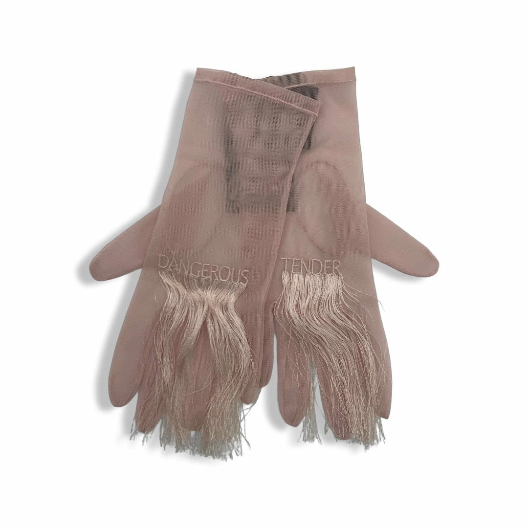 Tender and Dangerous Mesh Pink Gloves with Strings