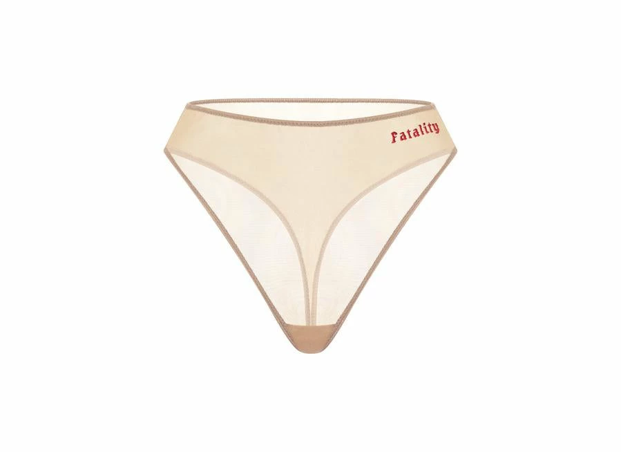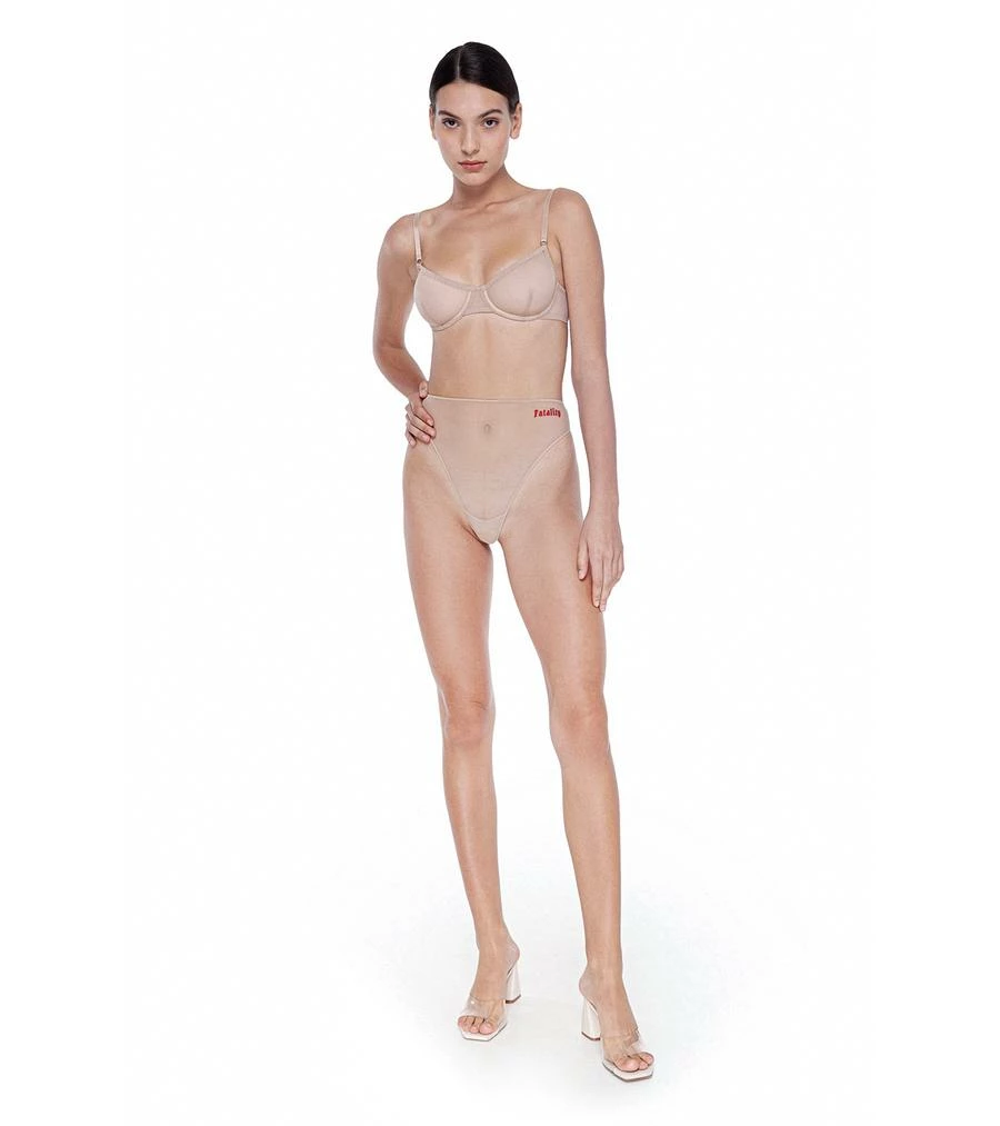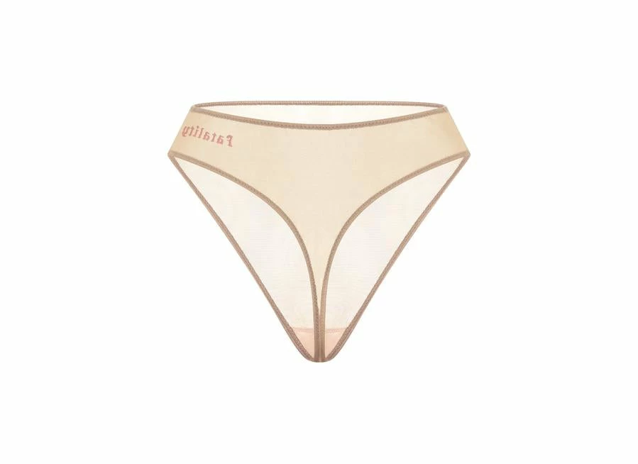 High-waist brief made of transparent stretch-tulle, with original embroidery in front.