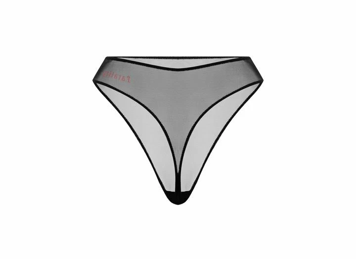 High-waist brief made of transparent stretch-tulle, with original embroidery in front.