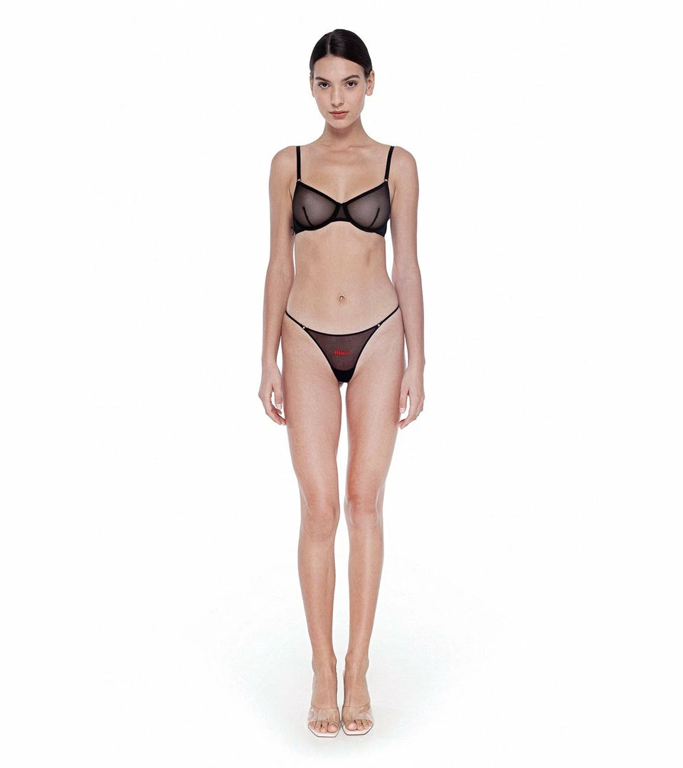 Thong made of semi-transparent stretch-tulle, with original embroidery in front.