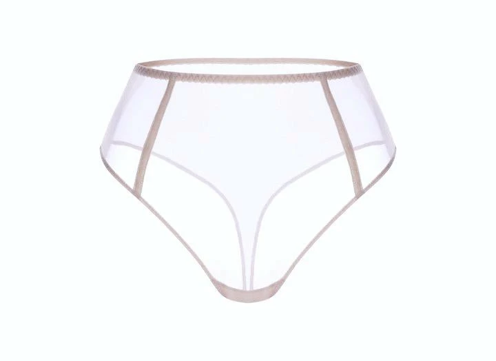 High waist brief made of stretch tulle.